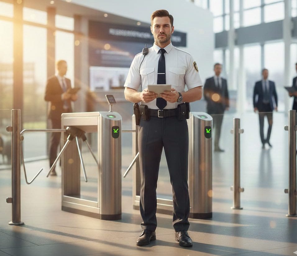 Implementación de sistemas y personal de control de acceso para una seguridad óptima.